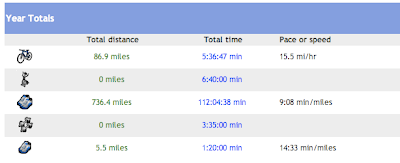 just wait until all the really long runs for marathon training get added into the mix... your mileage will soar! Good work! I'm really excited for B2B!!